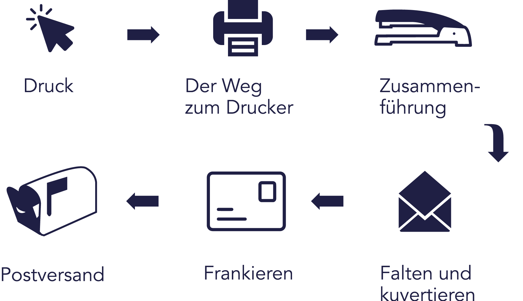 Sie erstellen Ihre Dokumente und senden Sie uns per E-Mail. Wir übernehmen das Erstellen des Briefes, das Kuvertieren, suchen für Sie das günstigste Porto und bringen Ihre Briefe zur Post.